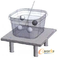 下面我们将通过对一组物体模型的渲染设置全过程来学习IS渲染功能的操作,图4为这组物体模型,它由水杯、水、小球和小棍组合而成并摆在一张桌子上。