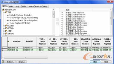 在解决这个问题的过程中,我们主要应用的是AIP的iPart和iAssembly功能。图(1)(2)分别是前门零件的2个方案,在AIP中可以根据自己的尺寸要求,建立如图3所示的2个表,分别激活后,就得到如图(1)、(2)所示的两个零件。在该项目的文件夹下,AIP软件会自动生成含“前门-01”和“前门-02”两个零件的文件夹。具体的配置方案个数,用户可以根据自己的需求随意设置。同时通过编辑表(图4),对该零件下面的各种方案进行配置,可以抑制某些特征、对某些特征的尺寸值进行不同的设定等。iPart功能的优秀之处在于可以利用基础零件进行修改,加快了设计的速度。
