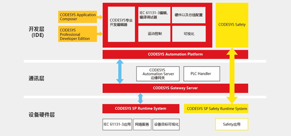 德国CODESYS是一家面向智能制造领域提供工业操作系统内核软件、嵌入式控制软件、自动化软件开发平台中间件、数字化工厂核心技术及解决方案的跨国企业,CODESYS致力于帮助客户打造自主品牌控制器(系统),赋能客户推动产业和市场变革。可实现PLC、运动控制及CNC控制、人机界面、网络可视化和远程监控、冗余和安全控制及项目开发与工程协同管理。 全球有350家控制系统生产商是CODESYS用户,包括ABB、施耐德电气、博世力士乐、倍福、Festo、日立、三菱等。