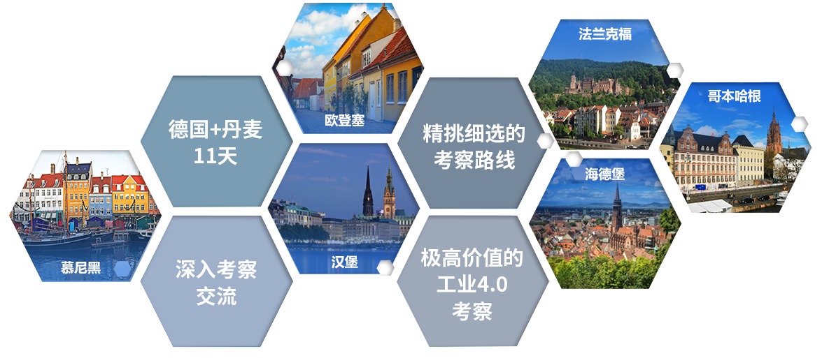 我们诚邀致力于智能制造的中国制造企业高层领导、信息化和生产管理负责人前往德国+丹麦,进行为期十一天的深度考察,体验欧洲国家先进的制造技术,探寻工业4.0的真谛,借鉴德国工业4.0和智能制造的最佳实践,共同领略智能制造的最新发展成果。