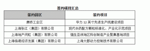此外,《国际金融报》记者获悉,此次推介会在工博会举行,有4个项目签约,总投资约413亿元。其中,华力12英寸先进生产线建设项目,是国家集成电路产业生产力布局的重点芯片生产线,落户康桥工业区南区,项目总投资387亿元,将在2016年底开工建设;现代中药配方颗粒标准化、产业化示范项目总投资约为12亿元,建设规模为设计产能单味配方颗粒800吨/年;强生亚洲地区科创制造产业聚集基地项目,投资额1.3亿美元。预计到2020年,该生产线产值将达到25亿元;上海大郡动力控制技术有限公司的“大郡动力”项目,是首个真正意义上的新能源汽车核心零部件项目,预计投产后至2020年,年产值可达100亿元。
