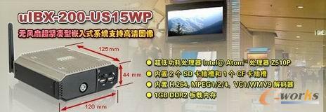 上海,1月21日,2010,全球工业电脑主要厂商威强工业电脑,最新推出无风扇超紧凑型嵌入式系统uIBX-200-US15WP。uIBX-200-US15WP支持Intel@ Atom™ 处理器Z510P 1.1GHz,内置2个SD卡插槽和一个CF卡插槽,1GB DDR2板载内存。超紧凑型及无风扇设计,能够满足安静无噪音的应用环境,如:广告机播放、图书馆、博物馆等。