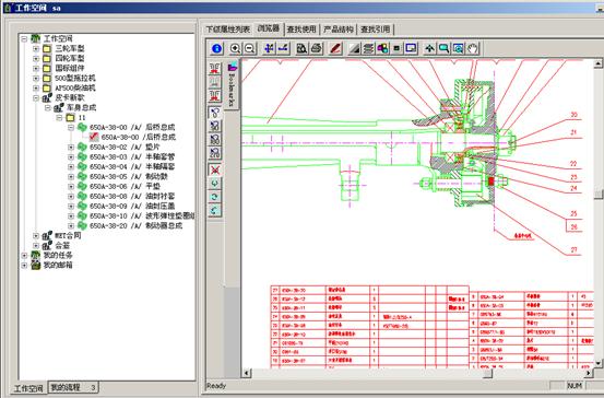 系统提供强大的BOM维护功能,可帮助用户编辑、建立产品的BOM结构。特别提供了深层拷贝功能,快速实现产品基本型到订单变型的转化。 系统能够将CAD电子图纸中的产品数据批量导入,并形成树状的产品结构模型,并可实现产品数据的双向关联。 对试制、小批、大批等不同生产状态的产品明细表加以区分和控制,通过相应的流程审批进行状态升级,保证不同阶段数据的有效性。 根据用户选用的配置、BOM类型自动生成产品整件汇总表、产品整件明细表和产品外购件等三大件明细表,并包括标准件、试制件、生产件等特性件在产品或部件中统计汇总,产品间借用件、被借用件的汇总统计,及产品或部件间相同件、差异件的比较等。 不同部门需要不同的BOM信息,系统提供设计视图/全视图 (准确描述零部件及其版本间结构关系)、计划视图(为安排生产准备工作服务)、制造视图 (自制件相关信息)、装配视图 (正确的装配顺序)等。 内嵌功能强大的浏览器,能够浏览AutoCAD、SolidEdge、SolidWorks、UG、Pro/E、Word、Excel等300多种CAD/Office常用文件格式,提供了先进的红线批注、领导圈阅功能,批注信息与原文件关联保存,而不破坏原文件本身。 提供多种入库方式,满足手工审批/无纸化电子审批等各种管理水平的企业需要,对原有的二维CAD图纸可进行批量处理,读取标题栏和明细栏信息,自动生成产品结构树,同时对应图档关联入库。 提供多种查询方式,根据属性描述信息快速定位所需要的图文档,不必了解它们的实际物理存储位置。 提供严格的图档更改管理,已经入库的图纸若需要修改,必须由申请人员提出申请,经过审签流程或相关人员批准后,方可对图纸进行出库修改。提交入库时可升级版本或覆盖原版本。图纸每次更改前后的属性信息都被保存到系统中,便于查看更改前后的图纸属性。(图)