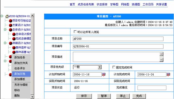 在共享环境下,通过加锁机制,防止同时多人修改文档。通过版次、版本的控制,保留修改记录、跟踪版本演化、确定有效版本,从而保证图档的最新及一致。 根据需求建立企业的通用图、通用件库,将积累到一定的数量图纸归档入库,提高CAD图纸的重用性。 设有统一的打印管理中心,需要打印时先提交申请,将需要打印的文件转换成特殊格式的打印文件,审批通过后执行打印操作,避免了文件的外泄。 通过用户、角色、组三层结构定义、维护用户,既可以按照实际行政组织结构关系进行组织,又可以按照项目组动态管理项目团队,可对在不同项目中担任不同角色的用户赋予不同的操作权限,从而实现矩阵式管理。 系统提供开放式的编码生成器,完全自定义企业编码规则、编码库,可自动产生零部件编码、工艺组件编码、工艺部门编码、人员编码、工序编码、工艺装备编码等。编码器可独立运行,充分考虑了与ERP、CAPP等系统的高度集成。 可选模块 基于WEB的项目管理模块向用户提供项目的管理与控制功能用户可根据项目的要求制定项目计划,安排项目任务及进度要求,设定任务的起始和完成时间,并根据设定要求对项目进度进行提示,对项目的进度进行监控、审核和调整。