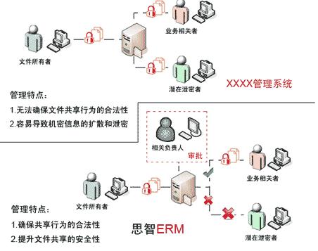 1. 前言 随着计算机及网络技术的不断发展,企业和机构的办公方式和业务流程也发生了较大的变化。大量计算机和网络设备的应用,使企业员工有了更为高效、便捷的办公平台。与此同时,数据信息的创建、存储、传输,以及共享方式也发生了革命性的变化。大量电子文档的出现,使数据信息的应用和传播为灵活和方便。 但是,由于计算机及网络设备的分散性排部,使企业和机构很难控制和监管员工在计算机上所从事的具体操作。也正是基于这样的原因,大量员工在上班期间,花费大量的时间和精力进行与工作完全无关的网络聊天、网站访问等,严重影响了办公效率,给企业带来了损失。并且这种行为很容易导致计算机或整个企业内部网络感染病毒、木马程序和间谍软件,造成内部网络中存储的重要数据信息受到破坏和窃取。除此之外,由于企业和机构将大量的核心机密信息和重要数据,例如财务报表、技术图纸、渠道名单等,以电子文档形式存储于内部网络中,也给信息的安全管理带来了较大的挑战。由于电子文档的易复制和易传递性,导致内部网络中的数据信息可以被很轻易地传输到外界,使企业的核心竞争力受到严重影响 只有首先树立安全意识、制定完善的信息安全管理制度,并采取先进的技术手段来深化制度的执行,才能真正有效提高员工的工作效率,加强数据信息的安全管理能力。这也是目前大多数企业和机构所要面对的首要问题。  2. 企业安全管理现状 2.1 内部网络信息安全存在漏洞 内部网络是企业和机构业务流程运行和重要数据信息存储的主要环境。通过设置防火墙、入侵检测、防病毒等边界安全设备,大量来自外部的入侵和攻击已经被有效阻止和屏蔽。但是,目前信息安全事件的主谋已经不再单纯是网络黑客和恶意程序,企业正面临着新的信息安全威胁。这些威胁来自于内部员工对重要数据信息的无意泄密和恶意窃密,并且它们能够给企业造成更为严重的打击。 据 FBI 和 CSI 在 2004 年对 484 家公司进行的网络安全专项调查显示:企业在数据安全方面遭受的损失中, 80 %来自于内部网络的攻击、泄漏和盗窃,只有 20 %来自于外部网络的攻击。由于内部人员泄密导致了 6056.5 万美元的损失,是黑客造成损失的 16 倍,是病毒造成损失的 12 倍。 在所有被泄密和窃密的数据信息中,企业内部竞争性情报占据了绝大部分。企业内部竞争性情报主要指那些能够对企业发展造成重要影响的数据信息,具体形式包括: 企业的机密技术文件、产品研发资料 设计图稿 会计账目、财务报表 战略计划书 外购竞标信息、供应链、合作伙伴信息 重要研究成果 研究论文 市场营销策划资料 其他:如董事会、投融资等方面管理类资料,客户资料 一些企业拥有较为完善的电子文档涉密管理制度,并且由单独的文控中心负责制订、监督、审计企业内部重要情报信息使用状况。对整个管理流程来看,涉密管理制度已经能够对数据信息进行安全管理。但是由于数据信息的易复制性和易传输性,以明文形式存储的电子文档很容易在发放到个人手中后就失去了有效控制,极大的增加了管理的难度和安全的隐患。  安全漏洞分析 隐藏的安全漏洞主要有不可靠的身份认证、电子文档明文存放、粗放的权限控制、文档权限无时效限制、数据信息传输途径无限制和无法追踪文件的使用情况等六类,下面将一一阐述。 1. 不可靠的身份认证机制 身份认证是指计算机及网络系统确认操作者身份的过程。计算机和计算机网络组成了一个虚拟的数字世界。在数字世界中,一切信息包括用户的身份信息都是由一组特定的数据表示。计算机只能识别用户的数字身份,给用户的授权也是基于所确认的用户数字身份进行的。 下面的场景可以帮助我们来了解身份认证的重要性。 场景一:不法分子在我离开的时候打开我的电脑,将我的《AAA渠道建设方案》用USB设备拷贝走了,而我完全不知; 场景二:我将重要文件放到服务器上共享给整个部门,结果其他部门的员工也进行了查看和下载。 验证一个人的身份主要通过三种方式:一是根据你所知道的信息来证明身份,假设某些信息只有某人知道,比如用户名、密码等,通过询问这个信息就可以确认此人的身份;二是根据你所拥有的物品来证明身份,假设某一物品只有某人才有,比如印章等,通过出示该物品也可以确认个人的身份;三是直接根据你独一无二的身体特征来证明身份,比如指纹、虹膜等。 目前,身份认证手段主要有密码认证、专用硬件设备认证和生物认证等。下面将对一些主要的身份认证方式进行分析。 1. 用户名/密码方式:简单易行,保护非关键性的系统,通常用容易被猜测的字符串作为密码,容易造成密码泄漏。由于密码是静态的数据,很容易被驻留在计算机内存中的木马程序或网络中的监听设备截获,是较为不安全的身份认证方式。 2. IC卡认证:简单易行,很容易被内存扫描或网络监听等黑客技术窃取。 3. 动态口令:一次一密,安全性较高,但使用烦琐,有可能造成新的安全漏洞。 4. USB Key认证: 安全可靠,成本低廉 但需加强硬件的安全性。 5. 生物特征认证:安全性最高,但技术不成熟,准确性和稳定性有待提高。 通过先进的技术手段,实现将用户的物理身份和数字身份进行安全的确认,是企业整个信息安全体系建设的基础。  2. 明文保存 目前,多数企业的电