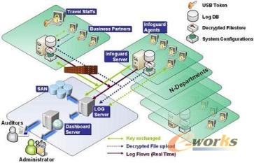 铁卷电子文档安全系统 铁卷(InfoGuard)电子文档安全系统是深圳市大成天下信息技术有限公司针对企业保密需求研制开发的一套电子文档、图纸保密解决方案,它能够完全透明地对受保护文档自动进行保护,用户在企业内部使用时不影响操作者原有操作习惯,保密环境建立简单、管理方便。是企业文件防泄密、图纸安全、数据保密理想的解决方案。 铁卷(InfoGuard)电子文档安全系统广泛适用于政府、军队、银行、证券、机械制造与设计、广告、GIS及地图业、咨询、法律、保健等行业,保护各种类型涉及国家秘密、商业秘密的文件。 铁卷能够保障 * 内部员工因为离职等原因,把秘密文件拷贝到软盘带走,或通过网络向外传递; * 网络骇客通过网络攻击等非法手段取得访问权限,并把文件复制带走; * 员工没有保密观念造成无意识地泄露,如使电子文档传给了没有阅读权限的阅读者,造成秘密信息公开; * 计算机病毒自动发送电子文档; * 各类存储设备(如笔记本电脑、U盘、光盘、移动硬盘)等遗失; * 旧设备报废,但没有对设备进行有效的数据擦除处理; 产品部署 铁卷电子文档安全系统需要安装用户终端(Agent)和管理中心(Server)。用户终端安装在所有希望被保护的工作站上,管理中心安装在文件管理员专用的文件管理服务器上。 铁卷的用户终端对使用者创建、保存文件的全过程进行安全保护,部署简易,无需重新启动电脑,即可透明起到防范作用。铁卷的管理中心能够显示企业内外部有多少台电脑在线上操作,并通过心跳控制对电脑上的机密文件进行控制,包括启用或禁用某台电脑的安全保护功能。管理中心也可以部署在非军事区(DMZ),提供合作伙伴或外部使用者的特定电脑加解密授权及文件保护。 应用软件支持  铁卷电子文档安全系统对应用软件的保护是完全透明的,目前铁卷支持的应用软件在世界同类产品中处于领先地位,包括如下:  支持的操作系统 服务器支持的操作系统:Windows 2000、Windows 2003 客户端支持的操作系统:Windows NT、Windows 2000、Windows XP、Windows 2003