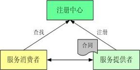 要真正的实现SOA,市场上必须要有以下四个因素:服务消费者、服务提供者、服务注册中心、合同。