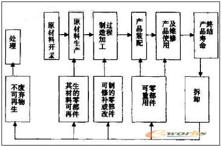 绿色设计是在产品整个生命周期内,着重考虑产品环境属性(可拆卸性、可回收性、可维护性、可重复利用性等),并将其作为设计目标,在满足环境目标要求的同时,保证产品应有的功能、使用寿命、质量等。绿色设计在产品整个生命周期中都把产品的绿色程度作为设计目标,在设计过程中,充分考虑产品在原材料获取、生产制造、运输销售、使用及回收处理对环境的各种影响。图4为产品的生命周期的闭环系统。