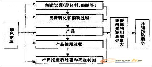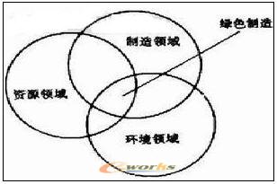 绿色制造(Green Manufacturing GM),又称环境意识制造( Environmental Conscious Manufacturing ECM)、面向环境的制造(Manufacturing For Environment MFE)等。绿色制造是一个综合考虑环境影响和资源效率的现代制造模式,其目标是使产品从设计、制造、包装、运输、使用到报废处理的整个产品生命周期中,对环境的影响(负作用)最小,资源效率最高(图5)。绿色制造领域包括三部分:(1)制造领域,包括产品生命周期全过程;(2)环境领域;(3)资源领域。绿色制造就是这三大领域内容的交叉和集成,如图6所示。