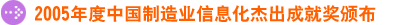 中国制造业信息化的发展经历了十多年的历程,“2005中国制造业信息化杰出成就奖”让哪些凭借多年来不变的执著和努力,为中国制造业信息化产业技术的发展做出了卓越贡献的精英人士得到了应有的肯定和鼓励。以他们为代表的人们促成了中国制造业信息化产业的发展的真正原动力。李培根院士颁布的“2005中国制造业信息化杰出成就奖”引起了与会嘉宾的热切关注