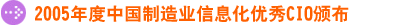 CIO是制造企业信息化建设推进者,不同的企业信息化建设的历程是不尽相同的,但是其付出的心血往往是相似的。由著名ERP专家陈启申、《中国计算机用户》常务副社长兼总编辑段永朝颁布的“2005中国制造业信息化优秀CIO”为哪些辛勤工作的CIO送上了肯定的答案和赞许