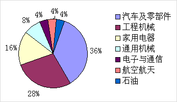 本次参评案例产品涵盖了汽车及零部件、通用机械、家用电器、工程机械、航空航天、石油、通信设备等,相关产品行业分布如下图: |